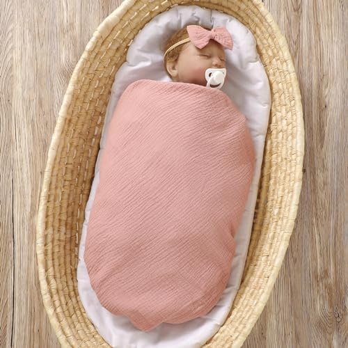 【Baby Swaddle Blanket】This baby blankets neutral is made of 100% organic cotton muslin, It is soft, breathable, and comfortable, just like snuggling in the arms of the mother sleep peacefully all night. The matching headbands Bows are made of muslin,Your baby will look super cute wearing the matching headband with this muslin swaddle blanket.