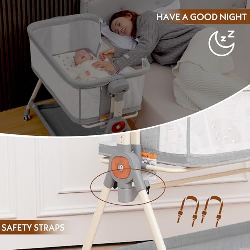 ADJUSTABLE HEIGHT: Rocking bassinet comes with 6 heights adjustment(15-20 inches), allowing you to raise or lower the bassinet to the perfect height for your bed. This makes it easy for you to keep an eye on your baby and attend to their needs during the night