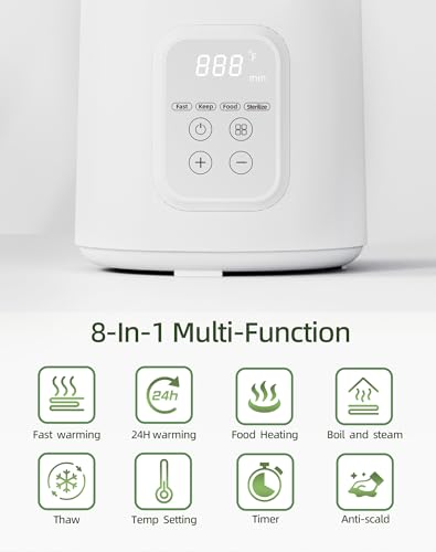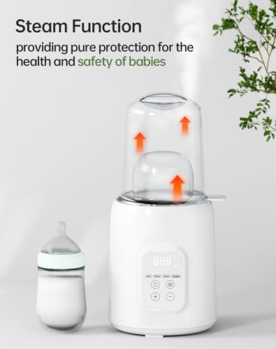 Multi-Functional:Universal Bottle Warmer for breast milk and baby food can Heat up/Thaw /Keep Warm/Steaming /Timer/Heat food /Adjustable Temp ,It also comes with a heat-resistant basket, making it an essential baby must-have for taking care of your little one