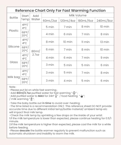 【Perfect for Night Feeding】Use Keep Warm function to maintain the milk temperature before going to bed by gentle water bath for those late night feedings. It’s also very useful when trying to get your baby to take a bottle and might try a bottle multiple times with short gaps between. No hot spots, keeping the nutrients and original taste.