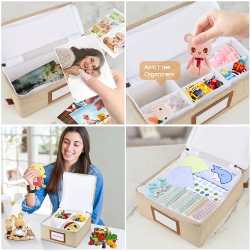 BABY KEEPSAKE BOX: Use our baby box keepsake to organize and preserving baby’s first outfit, first baby shoes, hospital bracelet, first tooth, favorite toy and other mementos, a great way to cherish and preserve precious memories of your little one