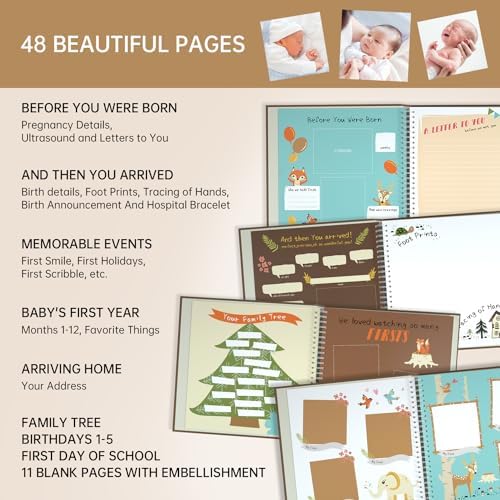 48-Page Gender-Neutral Baby Scrapbook-Capture sweet memories in the baby’s first year. Record all of the firsts when your little one walk, stands, laugh, the first holiday and so much more! Simply add pictures of your baby and add brief points about each event along the way! Features space for 3×3”, and 4×4” photos. We provide 11 blank pages at the back for you to personalize and customize your baby keepsake book. Great baby album and memory book.