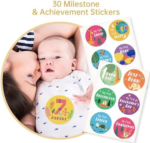 30 Baby Milestone Stickers: These are easy to read when photographed and take up minimal storage space compared to milestone blocks or a blanket. Create an everlasting memory. From their first words to their first steps, every milestone is a cherished memory that we want to hold on to forever. Great for those milestone photos with your little ones!