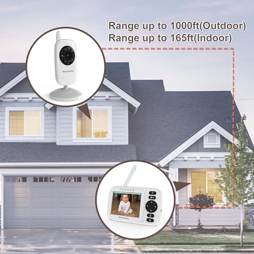 【1000ft Long Range & plug and play】Our baby monitors have an indoor monitoring distance of 1000ft and an outdoor monitoring distance of 165ft. No matter where you are in your home, you can monitor your baby anytime and anywhere with our baby monitor. The camera and screen are automatically matched, and ready to use when plugged in.