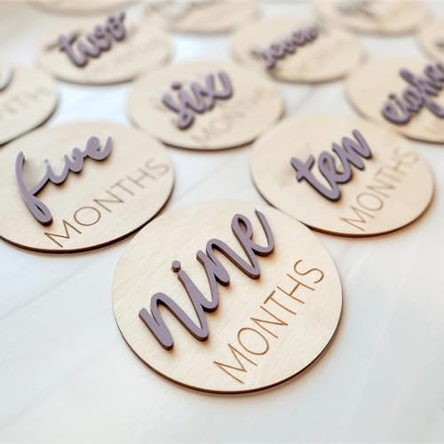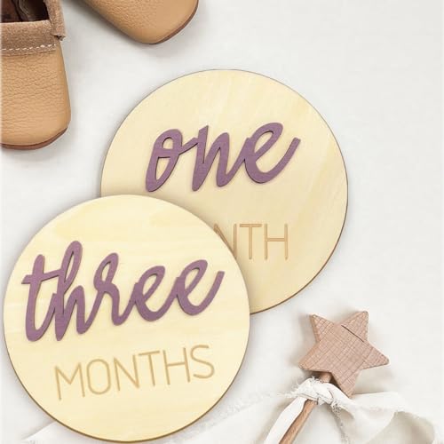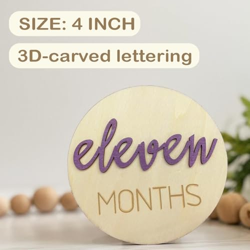 Unique 3D Design: Utilizing 3D carving techniques, each monthly milestone disc features a three-dimensional effect, adding fun and personality to photos. The wooden material provides a natural texture and understated yet elegant mauve color, making it a beautiful piece of art. Whether placed on a bookshelf or hung on the wall, it enhances the decor of any home.