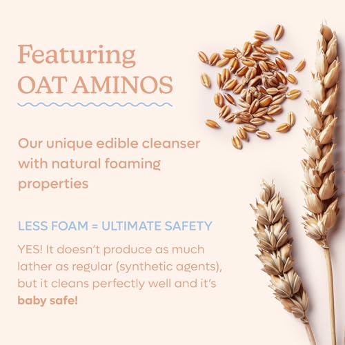 SENSITIVE BABY SHAMPOO – The star ingredient in our one-of-a-kind baby body wash and shampoo is OAT AMINOS! You may be surprised to know that they have NATURAL CLEANSING and FOAMING properties. Well they don’t produce as much lather as you would expect from synthetic agents, but who cares? They clean perfectly and are 100% BABY SAFE & TEAR-FREE!