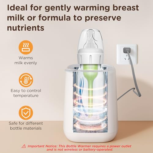 Bottle Warmer for Breastmilk: Utilizes advanced water bath technology to warm milk evenly and gently, preserving essential nutrients and preventing hotspots. This ensures safe and nutritious feedings for your baby, giving you peace of mind with every bottle