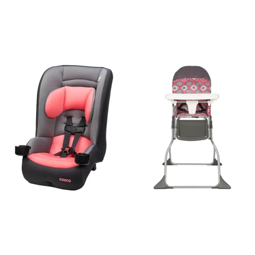 The Cosco KidsTM MightyFitTM LX Convertible Car Seat and Cosco Simple Fold High Chair bundle keeps your child safe and comfortable whether out and about or dining at home. The MightyFitTM LX car seat is designed to provide an extra-comfortable ride that lasts for years, keeping your child protected while rear-facing from 5-40 pounds and forward-facing from 22-65 pounds. Built with Side Impact Protection and an adjustable 5-point harness, this compact seat fits three across most back seats. It transitions smoothly between rear and forward-facing modes through multiple height and buckle positions as your child grows. Certified for aircraft use, the machine-washable seat fabric simplifies travel and cleanup. Complementing the car seat, the matching Simple Fold high chair sets up easily in seconds with a no-nonsense design. Its full-size, 3-position tray adjusts with your child, while the wipeable seat pad handles messy mealtimes. Lightweight and folding compactly, this portable chair stashes away at home or packs along for dining anywhere. Together, the MightyFitTM car seat and Simple Fold high chair bundle keeps your growing child safe, comfortable, and ready for every adventure.