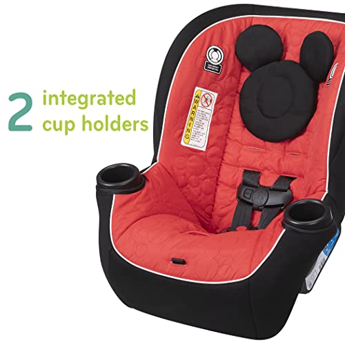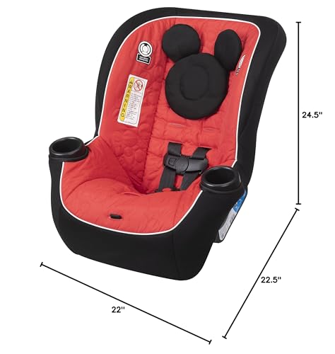 Travel is more fun with Disney Baby along for the ride! … all the way up to 40 pounds! Use the rear-facing position up to 40 pounds, forward-facing to 40 pounds, and for children as tall as 43”, the Disney Baby Onlook 2-in-1 Convertible Car Seat keeps them safer during every stage with Side Impact Protection. This Disney Baby Car Seat also meets Federal and American Society for Testing and Materials Safety Standards.With kids in the car, messes happen. Now, thanks to the easy-to-clean car seat pad, there’s no need to stress. The pad comes in a wide range of styles and colors, all of which remove from the seat and are both machine washable and dryer safe. A thorough wash is just a machine cycle away.If your chosen vehicle is an airplane, the Disney Baby Onlook 2-in-1 Convertible Car Seat has you covered. Certified for use on aircraft, it gives your child a familiar seat during the flight. The lightweight and compact design also get you through the airport without weighing you down. Two integrated cup holders make sure your copilot has plenty of room for drinks or a snack during the ride, whether on the ground or up in the air. The Disney Baby Onlook 2-in-1 Convertible Car Seat is proudly made by Cosco Kids™ in Columbus, Indiana. Made by American families for American families.(Actual fit may vary. Not all children will comfortably fit in the seat for the full weight and height ranges listed.)