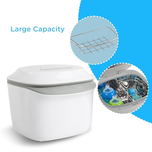 CONVENIENT UV SANITIZER: Experience the convenience of this baby bottle SANITIZER. This UV light sanitizer box features a spacious interior for multiple items, sanitizing your items quickly and efficiently with just a press of a button, and the automatic shut-off feature ensures safe use. No cleaning needed, simply wipe the interior before use.
