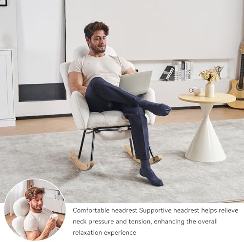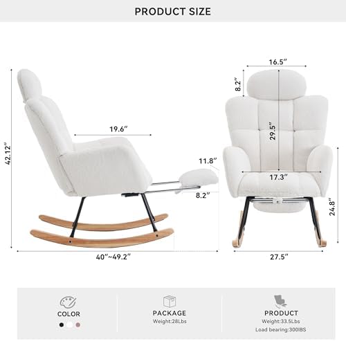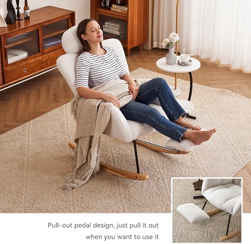 【Adjustable Headrest and Footrest】Our rocking chair features an adjustable plush headrest and footrest; the headrest can be adjusted to 4 different heights to provide optimal support for individuals of all sizes. There is a retractable footstool under the seat. Simply pull it out and the sophisticated footstool provides additional leg support, perfect for long periods of sitting