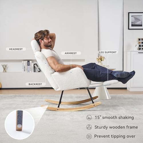 【Sturdy & Durable Frame】Our rocking chair is made of high quality metal and solid wood to ensure excellent stability and daily use for people weighing up to 300lbs. The long curved legs with foot pads are made of solid wood and have curved leg pads to protect the floor from scratches