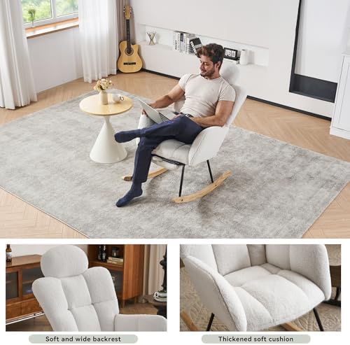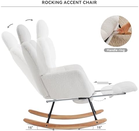 【Gentle Rocking for Mom and Baby】Besides the teddy velvet being safe for baby, it is also specially designed for the nursery with a safer bottom tilt angle (swing range does not exceed 30°) and extra two steel strips between the legs. Perfect for gentle rocking during nap time or story time