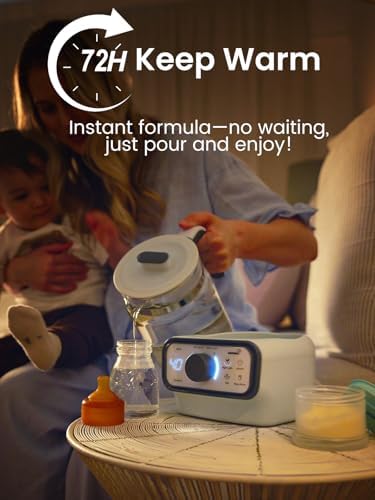 【Constant Warming】Keep warm all day and night until dry out. Feeding at any time to prevent the baby from crying.Equipped with bright LED’s which indicate the kettle is heating.The instant warmer will auto-shut off automatically when the water is dry out.
