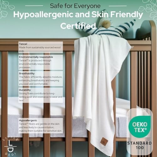 [LUXURIOUSLY SOFT & HYPOALLERGENIC] Experience the ultimate in softness with the Little Dedi Dua Baby Blanket, made from 100% TENCEL fibers. Its silky texture is gentle on delicate baby skin, making it perfect for newborns and toddlers with sensitive skin. Naturally hypoallergenic, this blanket minimizes irritation and promotes comfort throughout the day and night. The premium-quality material feels like a gentle hug, providing a luxurious touch your baby deserves.