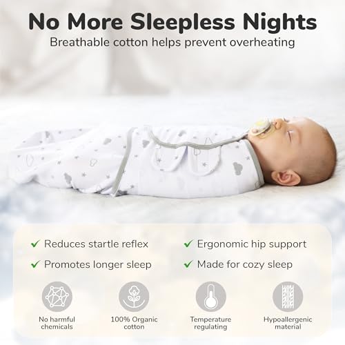 【ULTRA SOFT ORGANIC BABY SWADDLE SLEEP SACK】— Specifically designed for 0-3 Months, this baby swaddle promotes a cozy & comfortable sleep. Made from super soft 100% organic cotton, it offers a gentle & skin-friendly experience. The sweat-absorbent & breathable design of our nursery swaddle blanket prevents overheating, ensuring a peaceful sleep for your little one. Machine washable & fade-resistant, this sleep swaddle blanket is a vital addition to your baby essentials.