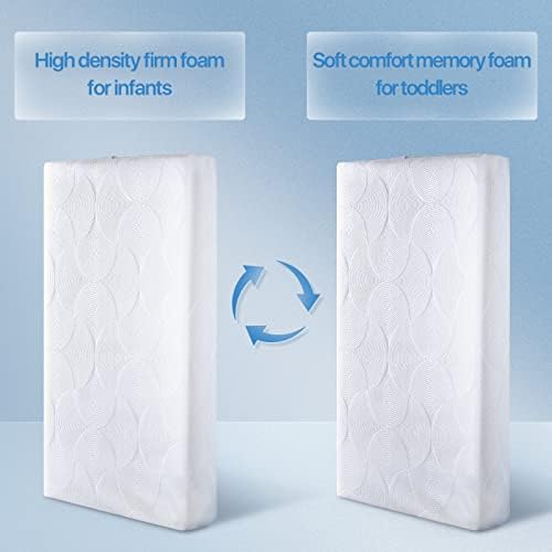 DUAL STAGE SYSTEM: Our 3rd generation dual side crib mattress is designed to be used in a different age span, infant side is constructed from a high-density foam with optimal firmness, luxurious feel for better night sleep. The slightly softer memory foam side give your precious toddler a maximum comfort. Warm Nest mattress fits a standard full-size crib as well as toddler bed.