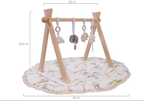 From newborn tummy time to sitting stages, our versatile activity gym provides a safe, stimulating, and comforting space for your baby’s daily play. The sensory toys support early learning, while the soft, reversible play mat encourages movement, rolling, and reaching. This beautiful wooden baby gym makes an ideal baby shower gift, baby registry essential, or keepsake item for any family.