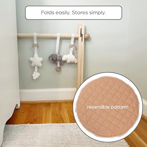 PARENT-FRIENDLY FEATURES — No-tool assembly takes under 5 minutes, Folds flat for easy storage & travel, Machine-washable mat (cold wash, gentle cycle)