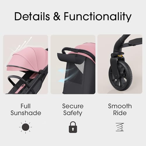 More Thoughtful Design Elements: This folding stroller comes with a back storage pocket, an extendable UPF 50+ canopy for sun protection and a breathable mesh back design for optimal air circulation. It keeps your baby cool and comfortable during sunny days