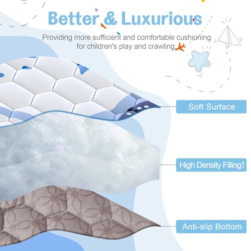 Sumptuously Soft and Thick – Indulge your baby in the ultimate comfort with our incredibly plush and soft baby play mat. Crafted with high-quality, delicate pure cotton fiber fabric, and generously filled with a 1cm thick premium sponge and high density microfiber, it provides optimal cushioning while nurturing your baby’s delicate skin. The reinforced edges also enhance the mat’s durability, ensuring a cozy and safe space for your little one to play, crawl, and relax.