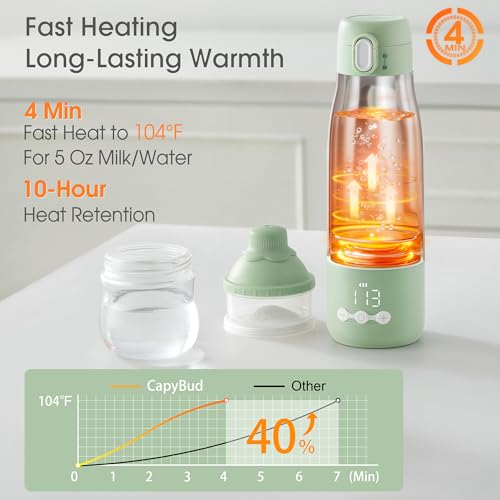 【Bottle Warmer On the Go】 The CapyBud portable milk warmer for baby, with its 12 Oz/340 ml capacity, is lightweight and fits easily into a diaper bag; the silicone pull-ring design makes it easy to carry, allowing you to warm milk or water for your baby anytime, anywhere