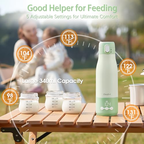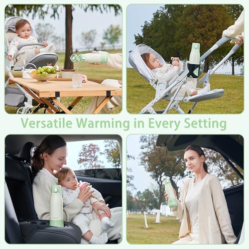 【Precise Temperature Control】 Our portable bottle warmer can be adjusted to 98°F, 104°F, 113°F, 122°F, or 131°F using physical buttons; the clear LED panel displays the current temperature, allowing you to monitor precisely and achieve the desired warmth effortlessly. (Note: This bottle warmer is for heating liquids only and not suitable for directly mixing formula)