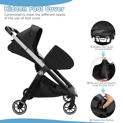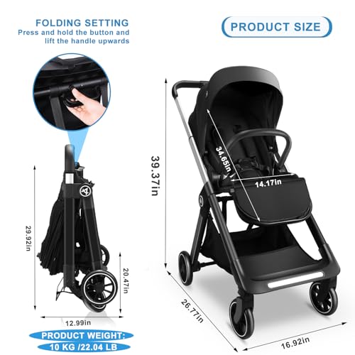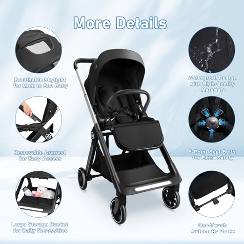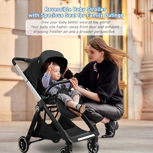 【Reversible Seat】: Upgraded stroller is easier to operate, AODI Infant stroller with reversible seat feature depends on whether you prefer to turn your baby towards you or outwards. When in parent facing, you can see kids through the sunroof net, and when in outward facing, you can interact more with baby and give your child more care