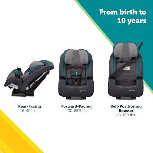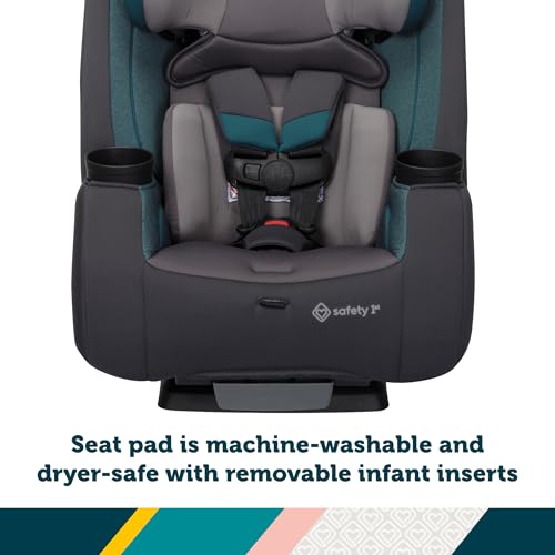 The Safety 1st TriMate All-in-One Convertible Car Seat keeps little ones secure and comfortable, from baby to big kid. The grow-with-me car seat has three modes of use: rear-facing infant car seat (5–40 lbs. and 19″–40″), forward-facing car seat (30–65 lbs. and 34.4″–49″), and belt-positioning booster car seat (40–100 lbs. and 43.4″–52″), making our all-in-one car seat ready for every phase of your child’s development. The seat’s slim design—under 19″ across without the cup holders—allows parents to fit three slim car seats across the back seat without sacrificing comfort. The seat pad is machine-washable and dryer-safe. You’ll always get the best fit with the 3-position adjustable base, 1-hand-adjustable harness system, and 8-position headrest.