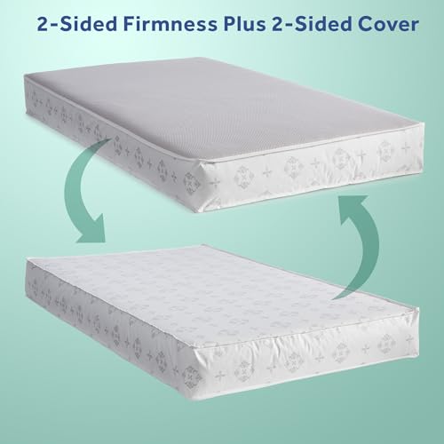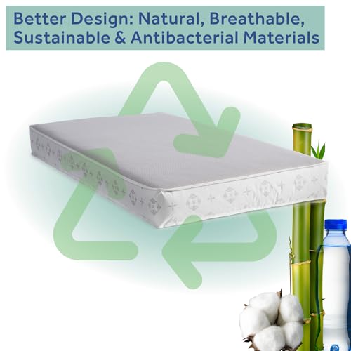 Dual-Sided Crib Mattress for Infant and Toddler Use – Features a breathable infant side with a silky rayon from bamboo cover and a waterproof, hospital-grade antibacterial toddler side for hygienic sleep.