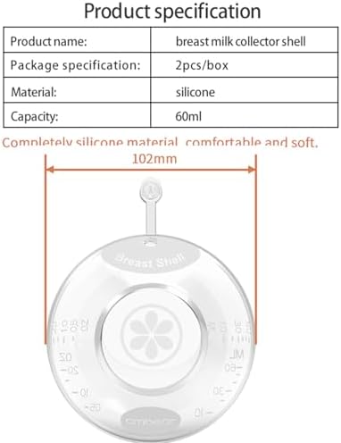Brand Name: CMBEARCreative Design: designed with a covering lid to avoid leaking when moving.Feature:Soft to skin, BPA free, Protect Sore Nipples, Collect breast milkApplication:For Breast Feeding Mother with leaking breastProduct Name:Silicone breast shellsColor:TransparentParcel list: 1 box contains 2pcs shells of 60ml 2oz volume.Note:They are medium size for average nursing mothers, designed with a 3.5mm hole for leaking nipples. Big boom breast might not fit it.