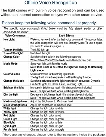 [Voice comand Control]The light comes with built-in voice recognition and can be used without an internet connection or sync with other smart device.Just speak specific voice commands to control it after power supply.Allow children to switch on and off, change colors, change modes, and other operations without the need to touch the light at all.