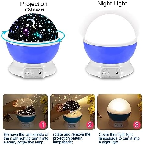 [360 degree rotatable Star Projector,Regular night light] When the lampshade of projection pattern is placed on it and take off the night light lampshade, turning it to a 360 degree rotatable projection lamp. Rotate and Take off the projection lampshade and cover it with the night light lampshade , it becomes a regular night light with white and RGB color changing lights.