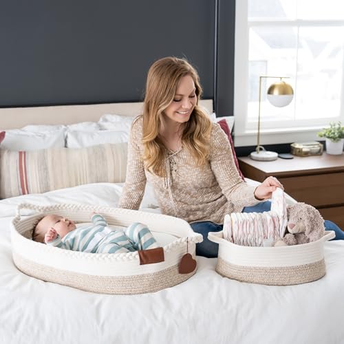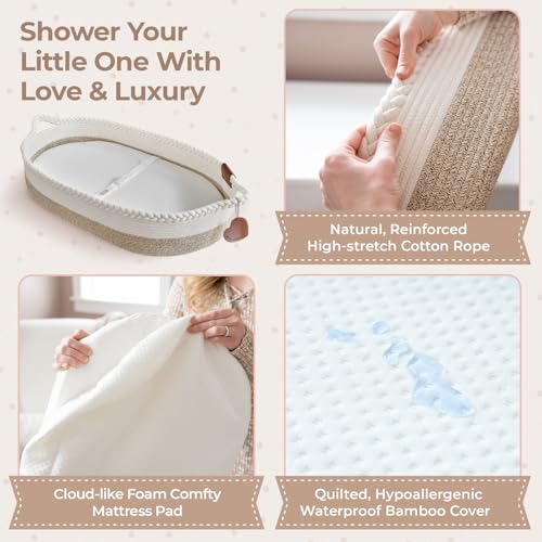👪 FAMILIES UNITE IN LOVE FOR THIS NEW PARENT ESSENTIAL: This reinforced cotton rope moses basket for babies is the perfect haven for diaper changes, tummy time, and soothing massages; Our portable moses baskets ensure your little one stays cozy and protected from cold, hard surfaces, providing you with peace of mind wherever you go