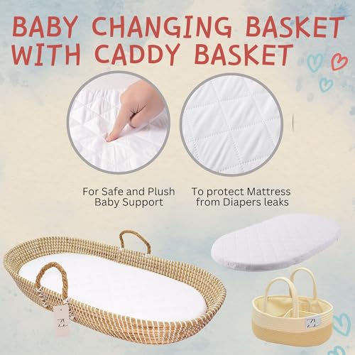 All-in-One Baby Changing Basket Bundle: This comprehensive newborn bundle includes a premium baby changing basket, baby diaper caddy basket, soft baby towel , baby changing pad with waterproof cover —everything new parents need for a stylish, safe, and organized diaper-changing space.